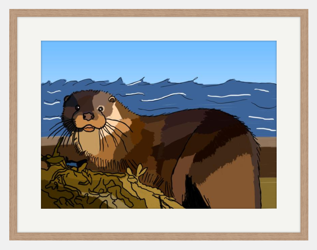 A colourful, striking picture of an eurasian otter. This design was commissioned by one of the UK’s leading environmental organisations. This CoolArt2021 picture will be printed as a ‘Giclee’ standard print on a heavy weight matte paper. TFPC uses high grade Perspex brand acrylic as glazing. It is 2.5mm thick and indistinguishable from normal glass, except that it’s optically clearer and less fragile. The framed prints are strung with picture cord for hanging, as standard. The framed prints are delivered by courier in the UK, at only £8.95.